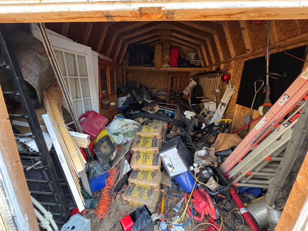 At the same time, we carefully set aside and organized the items the homeowner still wanted to keep. Once the junk was gone and the remaining items were sorted, the shed became a usable, functional space again.